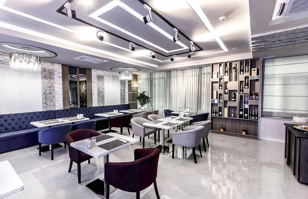 Konuklar restoranda kahvaltı yapabilir. Gastronomik restoran, yöresel mutfağı alanında uzmandır. Otele 150 metre uzaklıktaki CafeCity Five, W-Coffee restoranlarında yemek yiyebilirsiniz.600 metre uzaklıktaki Nizami metro istasyonu, Bakü şehrinin tüm bölgelerine hızlı bağlantı sağlamaktadır.Üstelik otelde emanet bagaj hizmeti, berber dükkanı, gazeteler vardır.